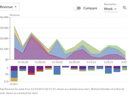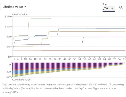 Their business's data is particularly interesting to look at. Since some of their products are on a subscription-based payment, we get to see increases in their Lifetime Value (LTV) every month, i.e. every 30 days. Being able to visualize this trend exactly allowed them to hone in on how to maximize their monthly revenue to increase their LTV.