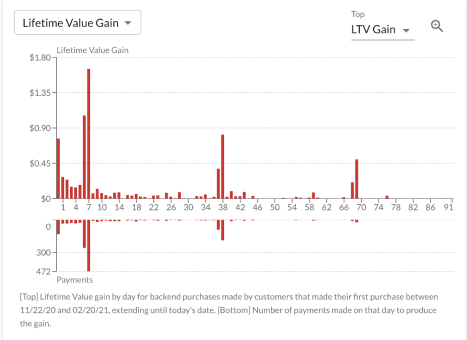 Lifetime Value Gain Graph Under Path/Backend Analysis for A Specific Funnel